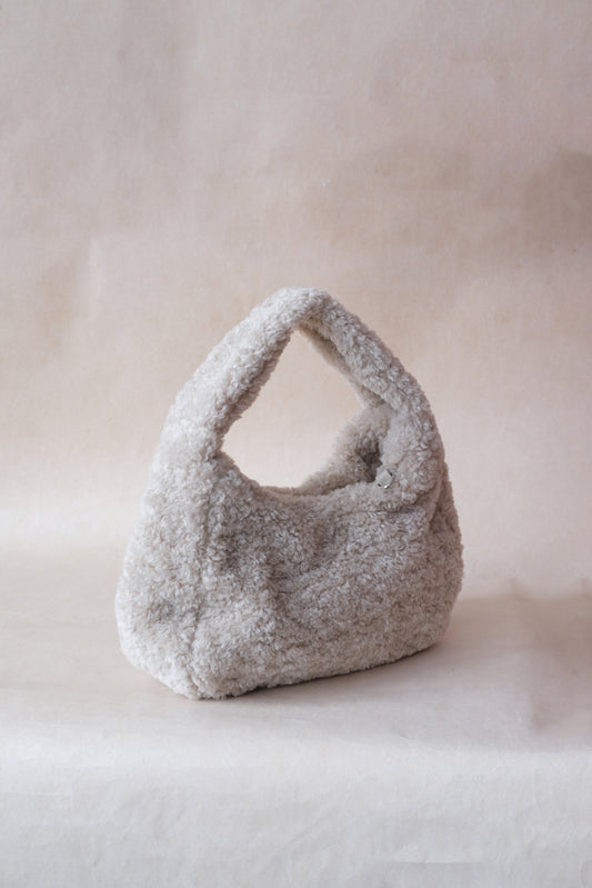 Velour Teddy Handbag - Almond White