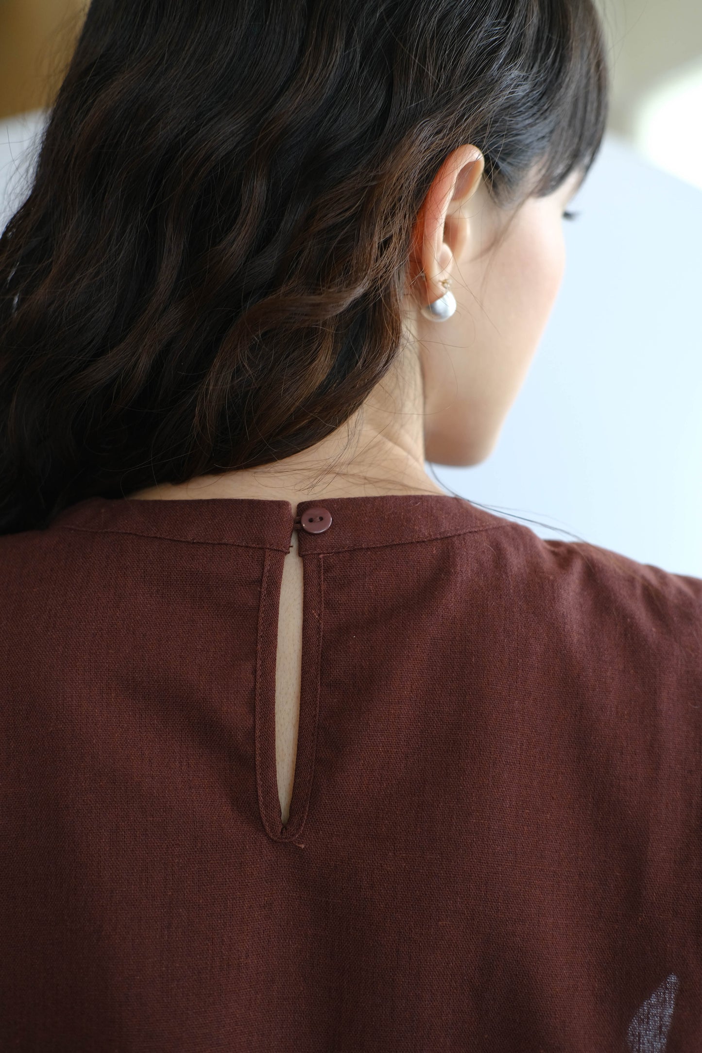 French Shoulder-padded Sleeveless Cotton and Linen In Brown Red