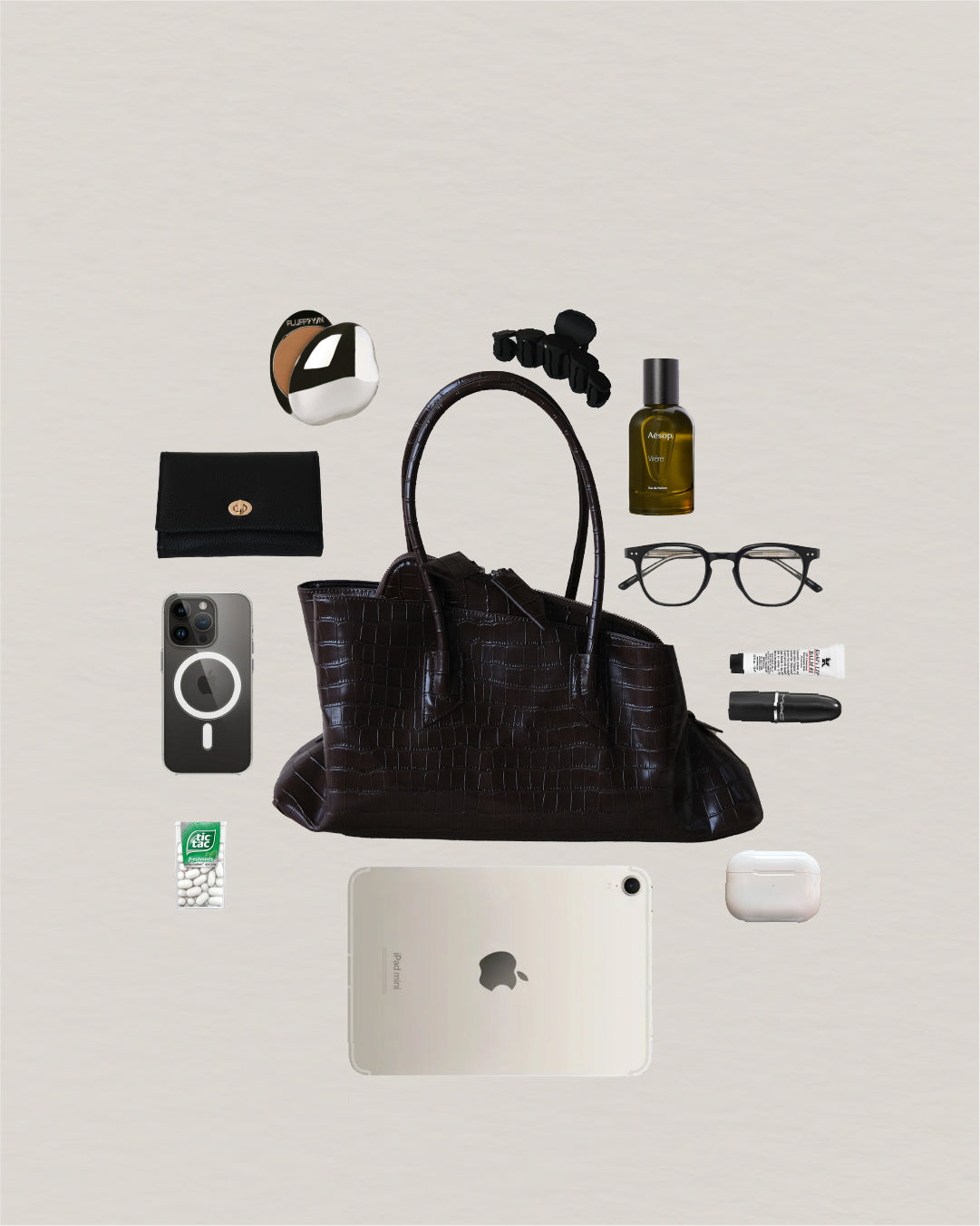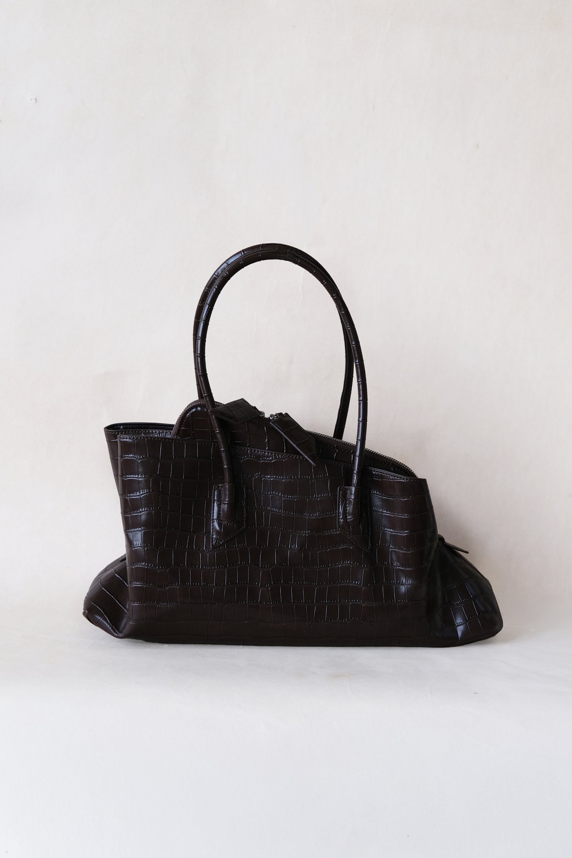 Meet the Barne Époque Tote in a rich coffee-colored crocodile pattern—a playful twist on your everyday bag. With three distinct compartments, it keeps your daily essentials neatly organized while being super easy to carry wherever you go. Stylish yet practical, this tote adds a fun edge to your routine without missing a beat.