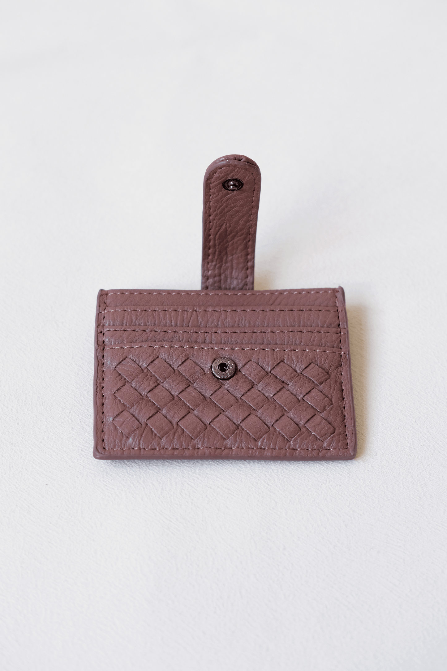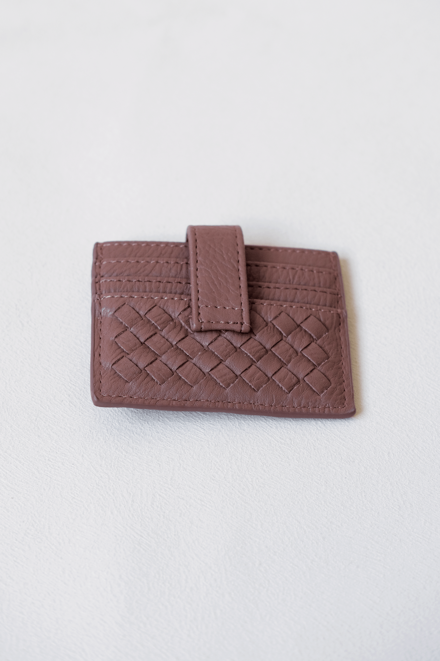 Rebelliously compact, this Little Weave card holder defies conventional storage. Crafted from vegan leather with audacious handwoven details, it boldly houses your cards while making an unapologetically elegant statement. Dare to accessorize differently.