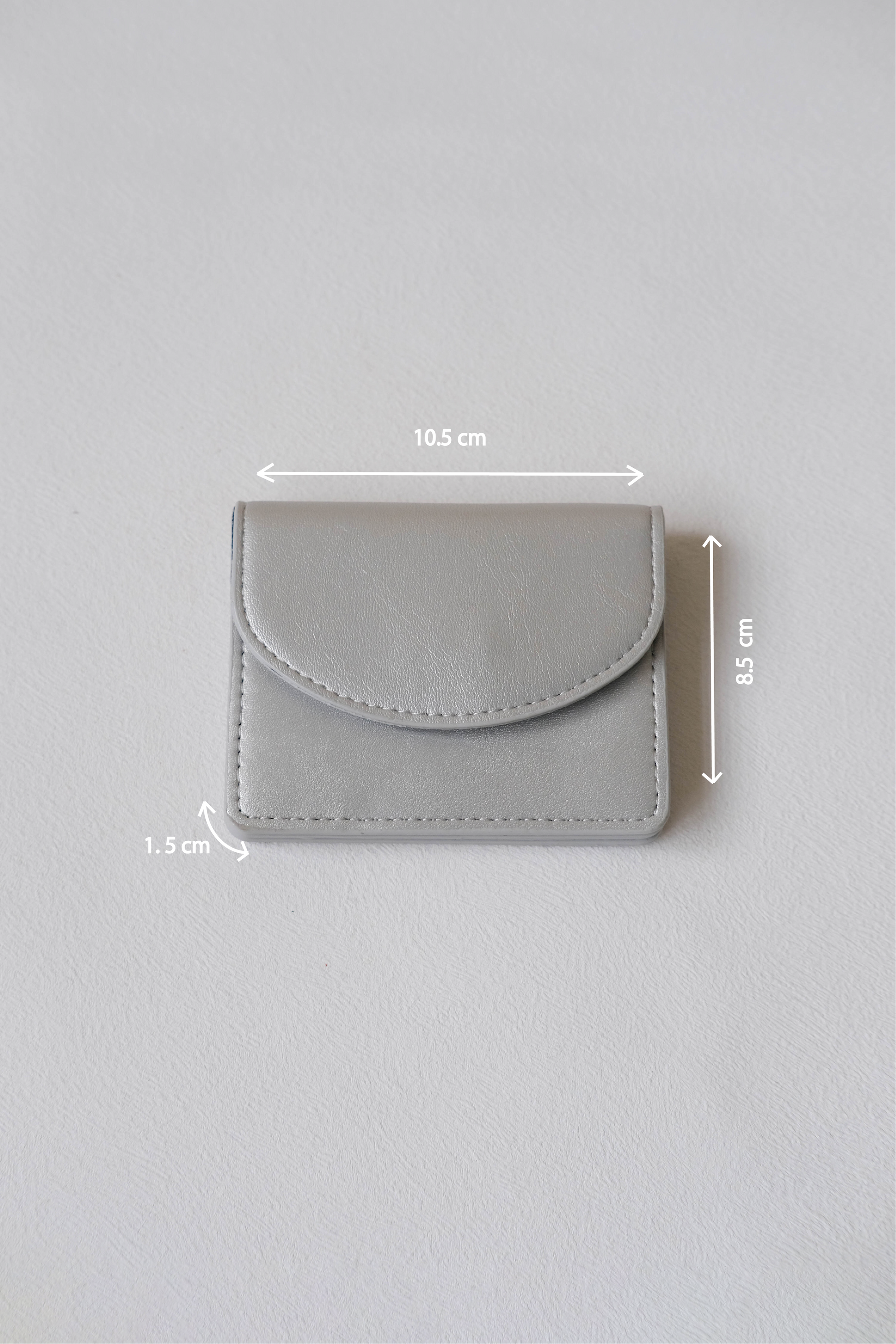 Bring a touch of modern elegance to your accessories with the Coin Card Holder in silver. This creamy vegan leather holder not only keeps your cards in place but also provides space for your loose coins. Its sleek design and multifunctionality make it the perfect blend of practicality and glamour.