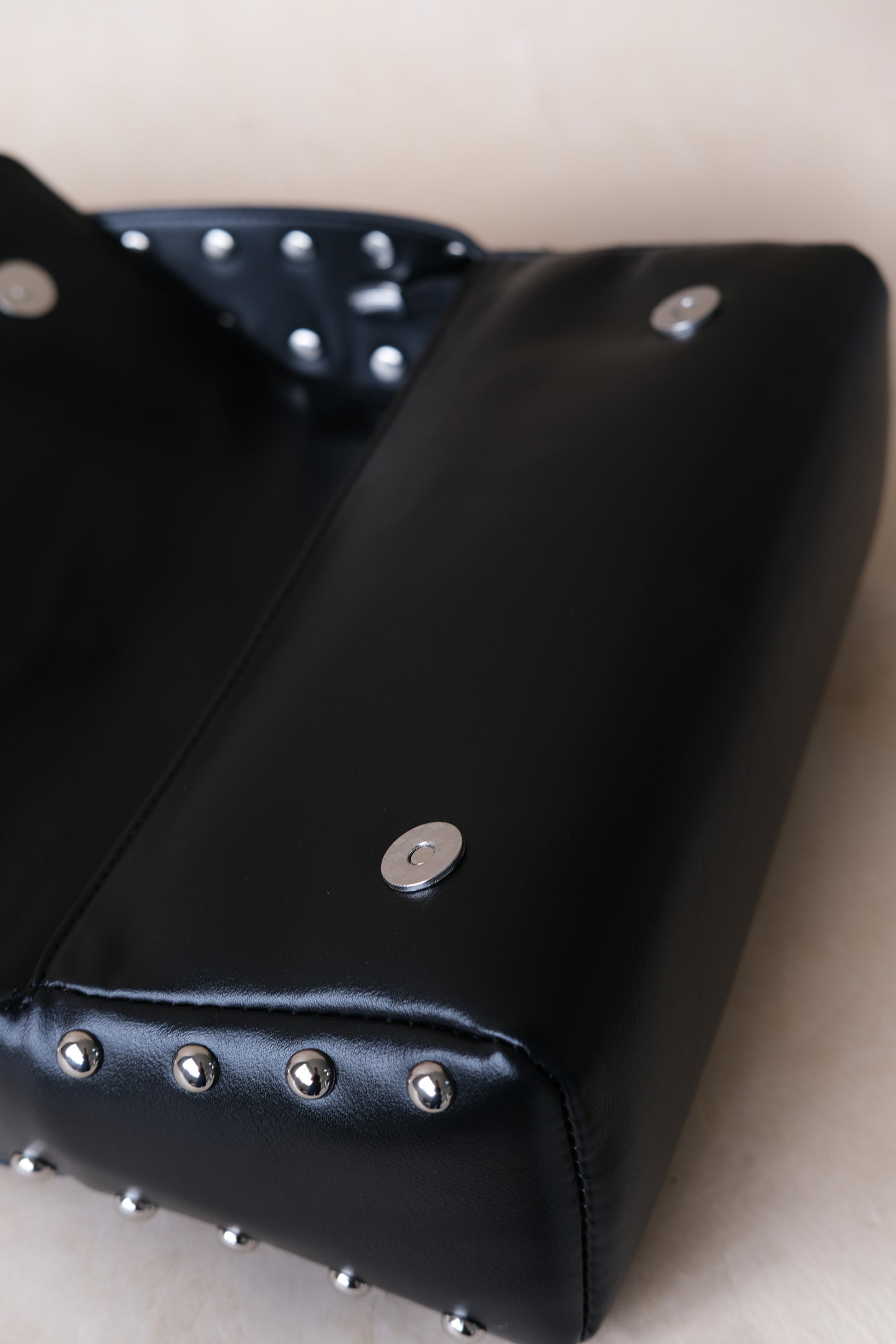 The Léonie Classic Stud Bag commands attention with its bold magnetic closure and sleek, medium size that's effortlessly portable. Designed to hold all your essentials without compromise, it keeps you ready to take on the day—whether at work or on the move. Embrace organization and confidence with a bag that’s as daring as you are.