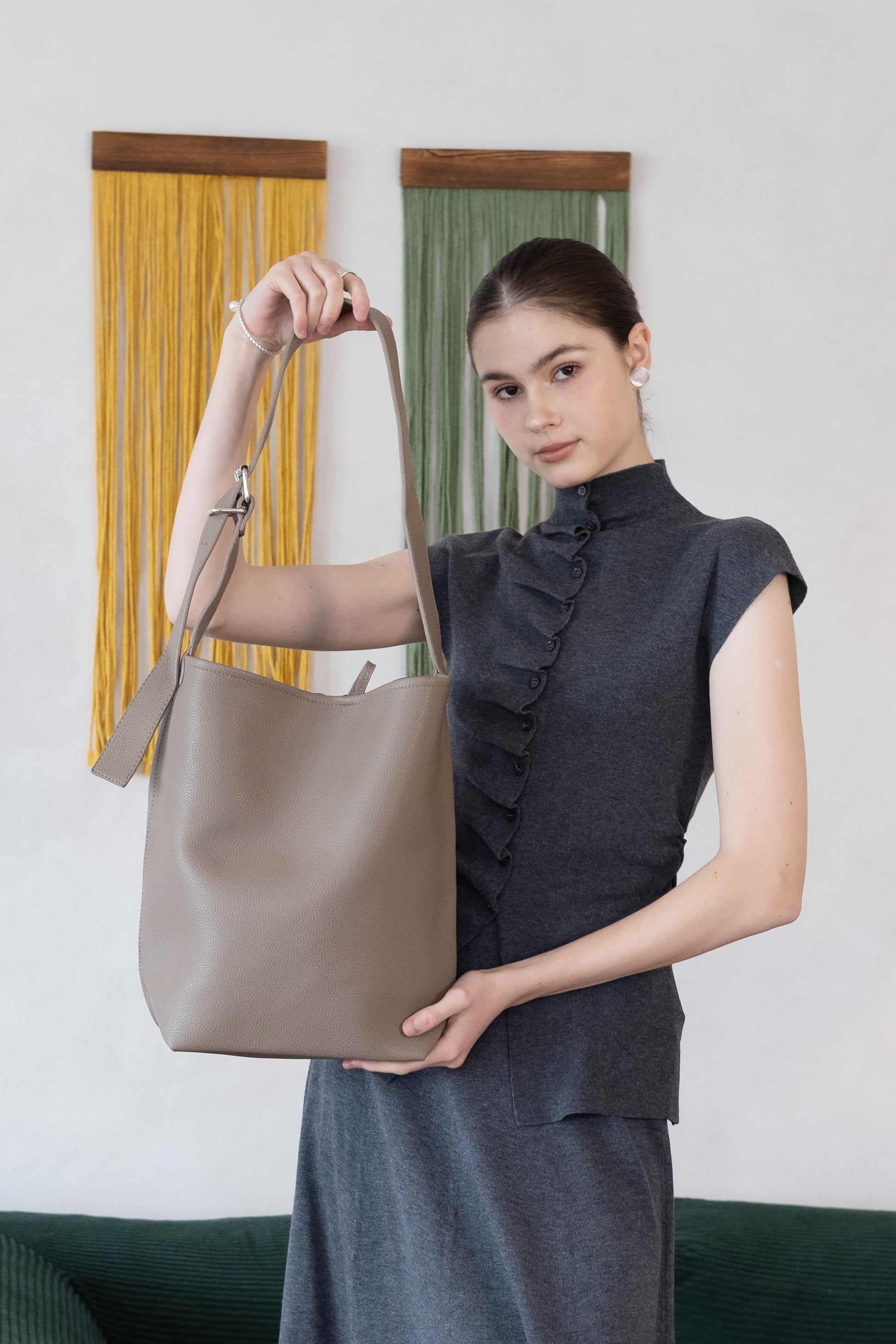 The Alira Bucket combines bold style with practical design. Its sleek, modern silhouette holds your daily essentials effortlessly, from bottles and laptops to umbrellas. Perfect for those who dare to stand out while staying organized and ready for anything.